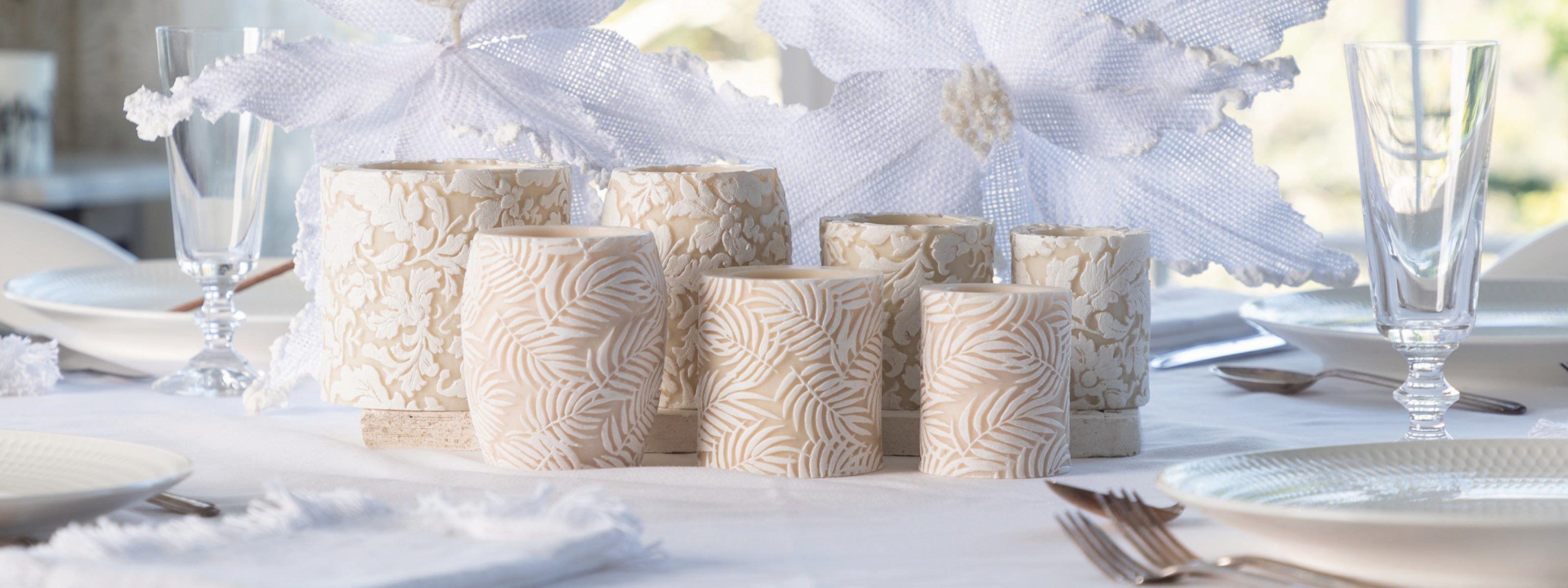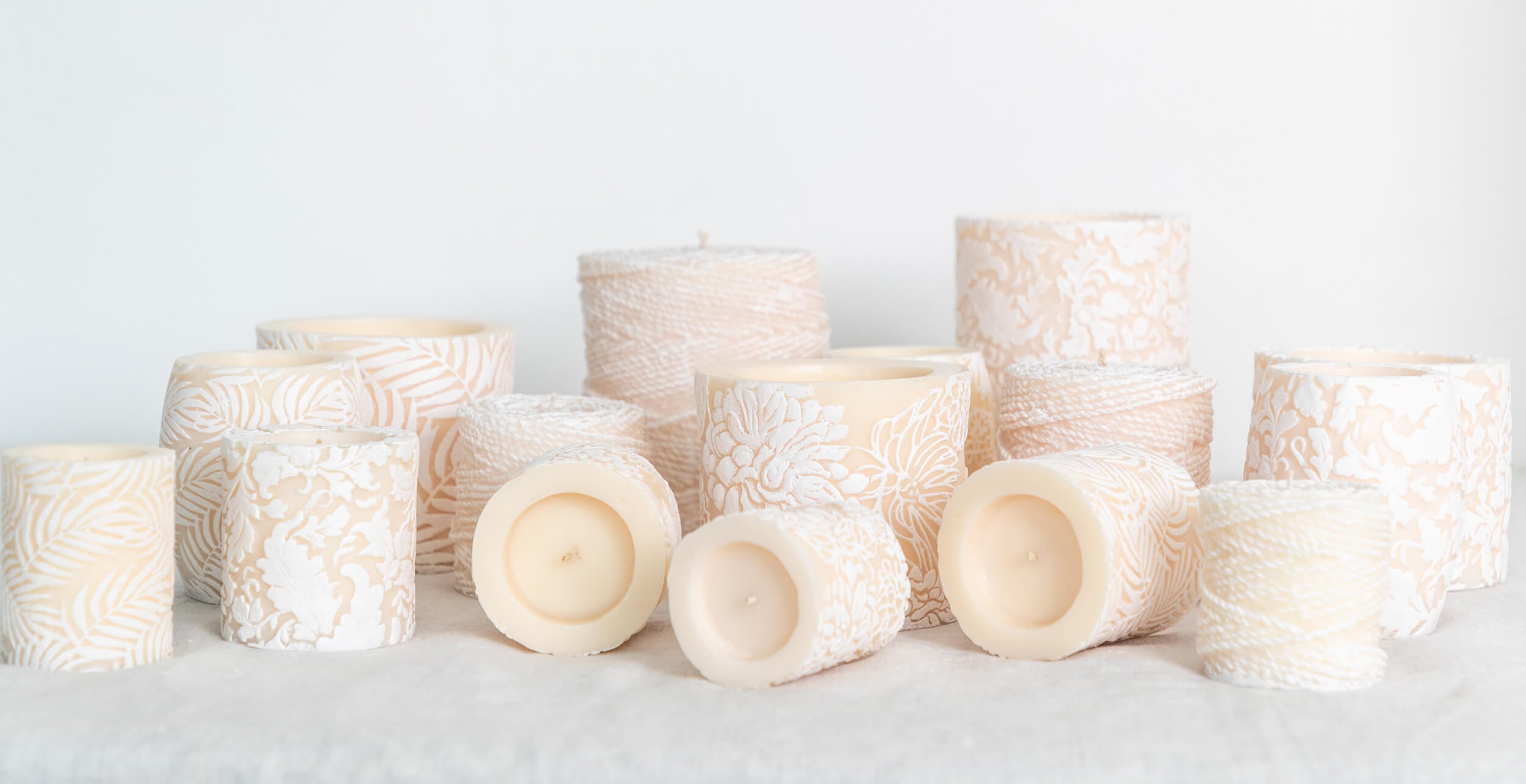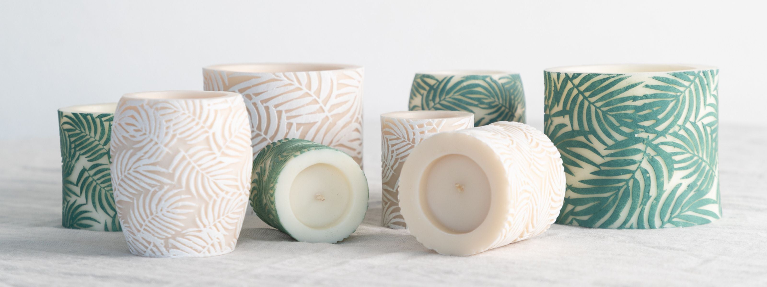 The wooden blocks are then used to fashion silicon moulds into which molten wax is poured to create the textured external wall of each beautiful candle.
