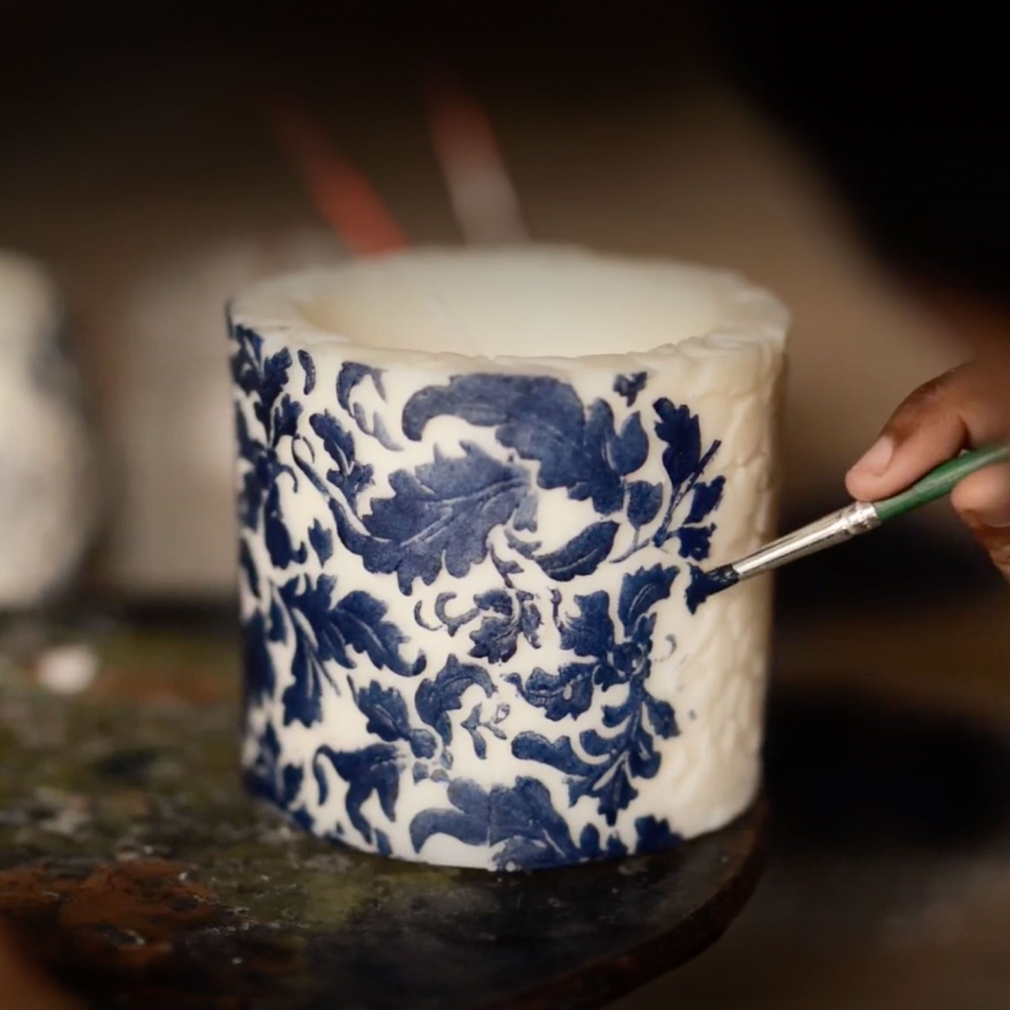 The candle is then individually hand painted using delicate brushes and sponges and left to dry. Finally, every candle is wrapped in tissue and surrounded by a layer of spongy protective paper before being placed inside a box ready for shipping.